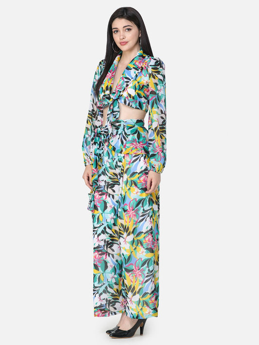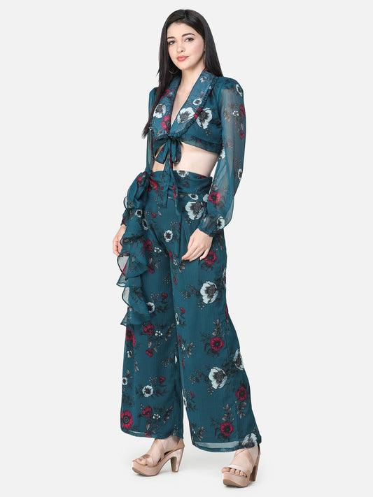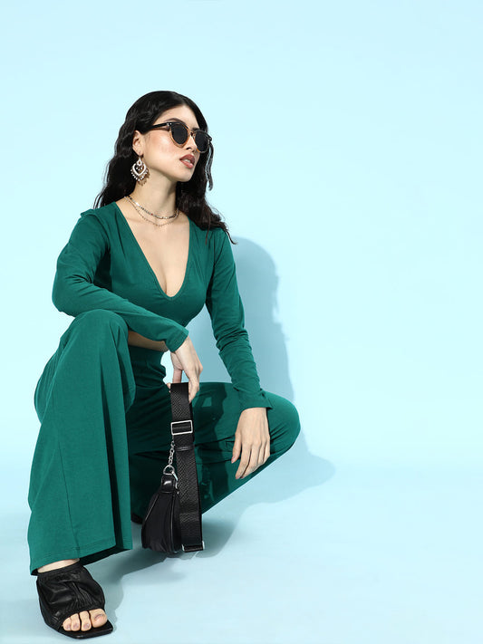 SCORPIUS Teal Deep neck Coord Set with Pants