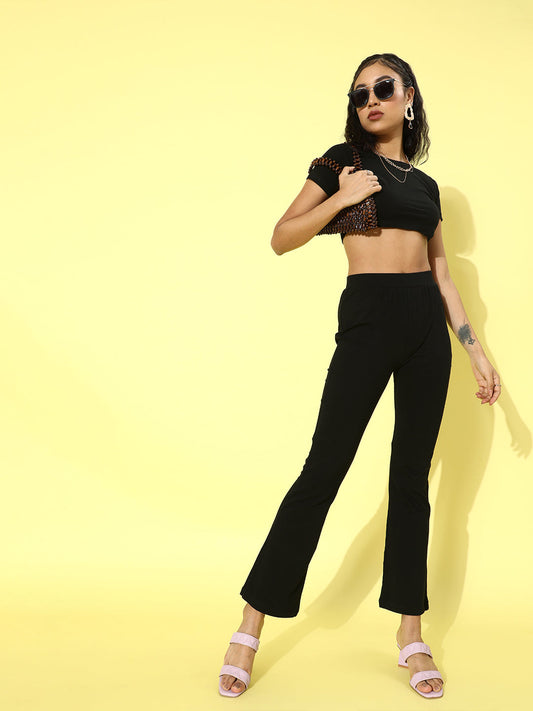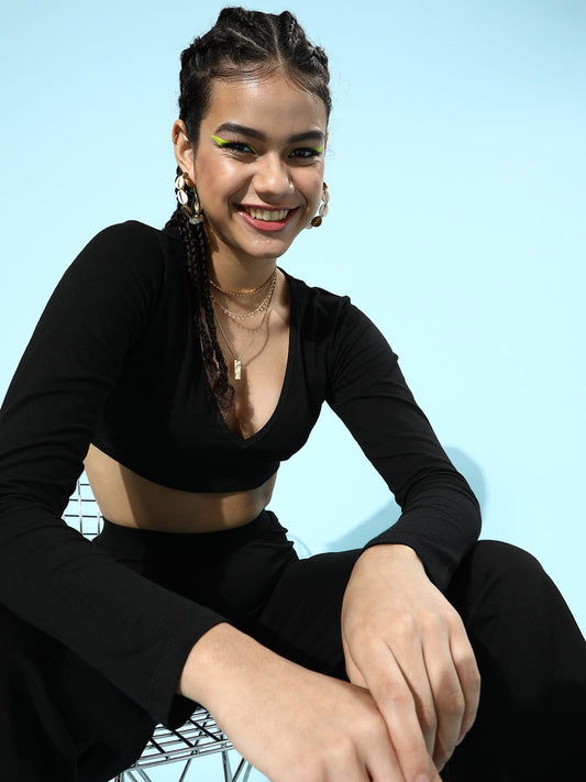 SCORPIUS Black Deep neck Coord Set with Pants