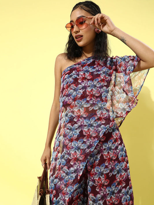 Cation Printed Maroon Clothing Set