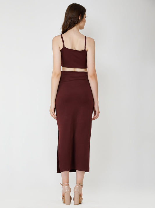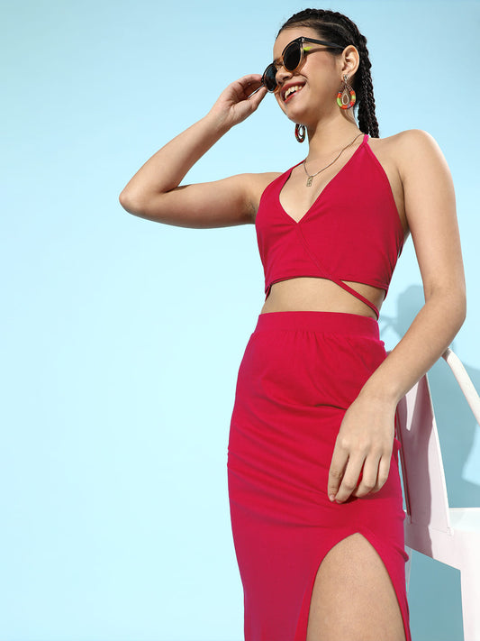 SCORPIUS Magenta Backless Coord Set with a slit Skirt