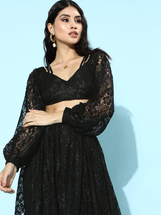 SCORPIUS Black Net Top and Skirt Coord Set