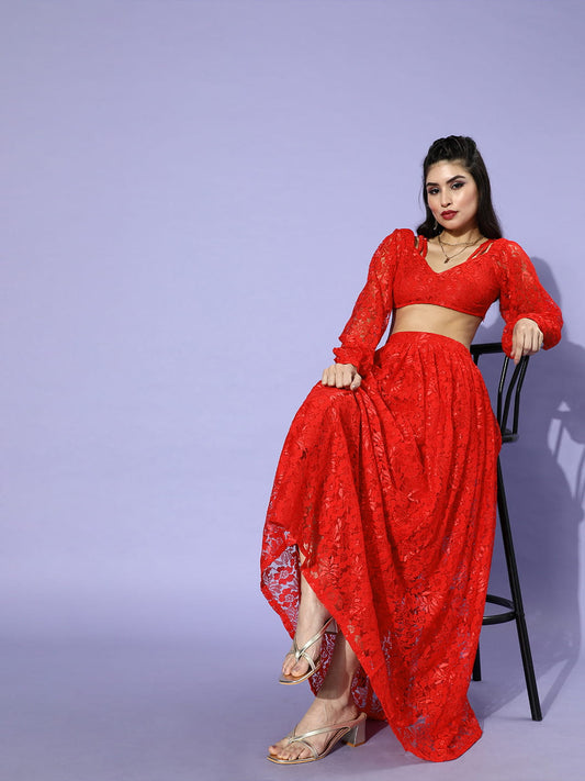 SCORPIUS Red Net Top and Skirt Coord Set