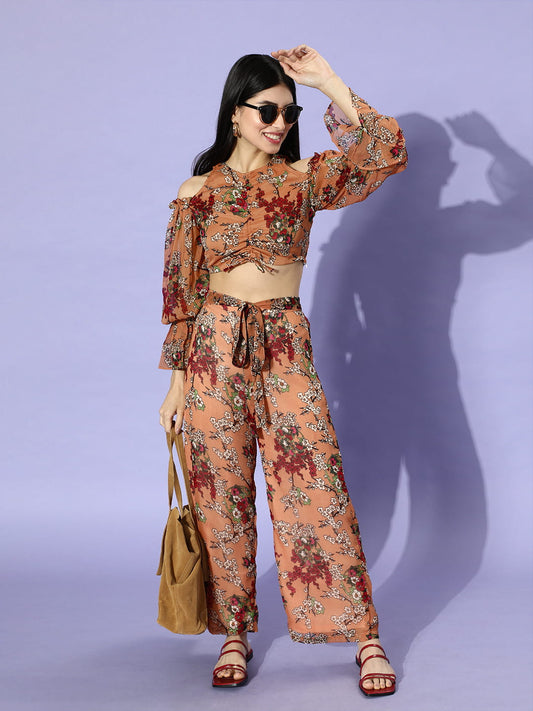 SCORPIUS Croptop and Pants Orange Printed coord set