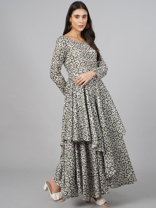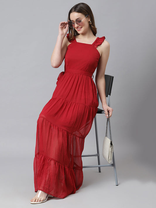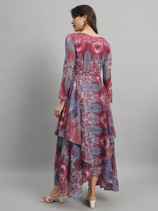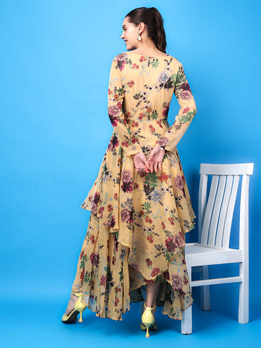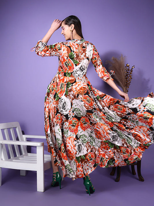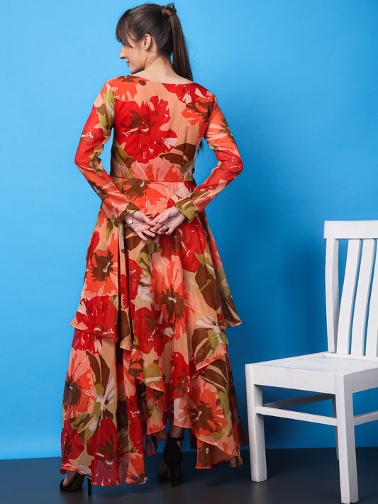 SCORPIUS Floral Printed Layered Fit Flare Maxi Dress