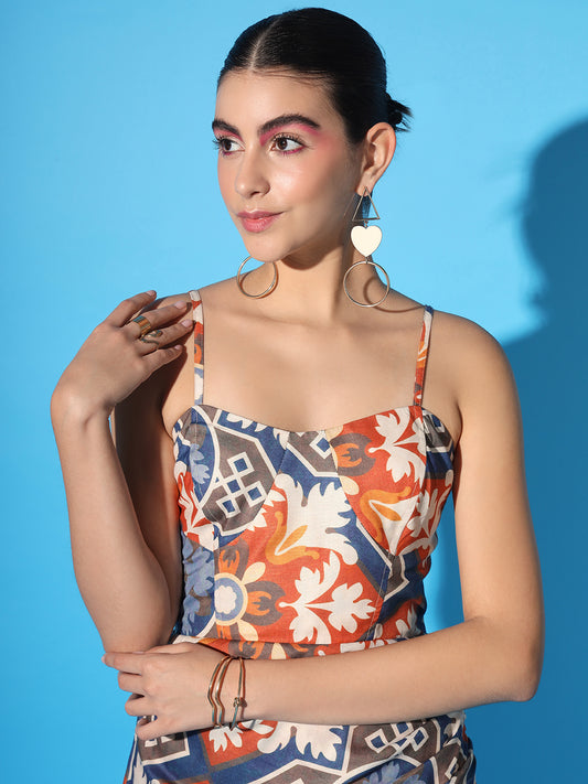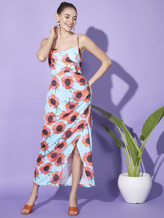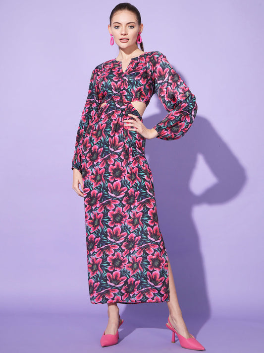 SCORPIUS Floral Printed Cut Outs Maxi Dress