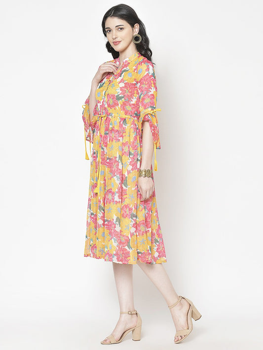 Sunset Bloom: Pink and Yellow Floral Designer Dress
