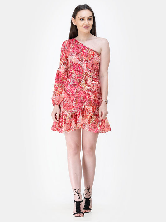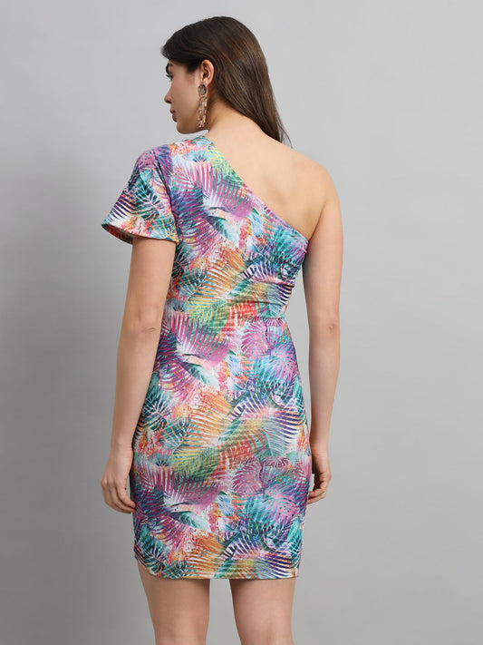 SCORPIUS Floral Printed One Shoulder Bodycon Dress