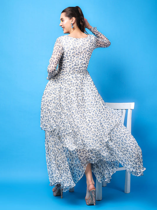 SCORPIUS Floral Printed Chiffon Maxi Dress