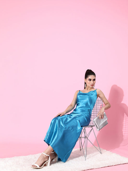 SCORPIUS Satin Blue Camisole Dress