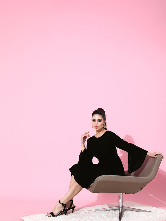 SCORPIUS Velvet Black Frill sleeve dress