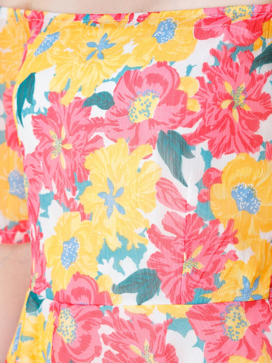 Multicoloured Floral Print Off Shoulder Dress