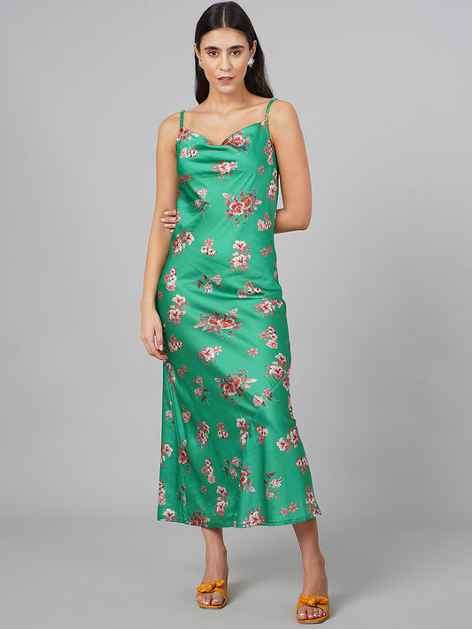 SCORPIUS Satin Green Printed Dress