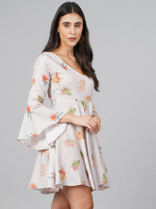 SCORPIUS Swiss OffWhite Printed Dress