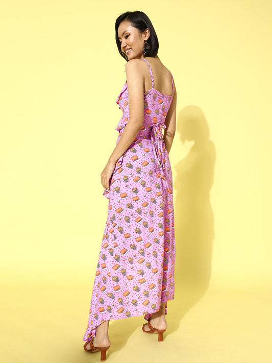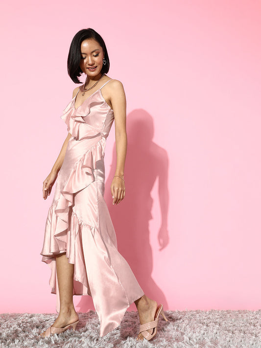 SCORPIUS Satin Solid Baby Pink Maxi Dress