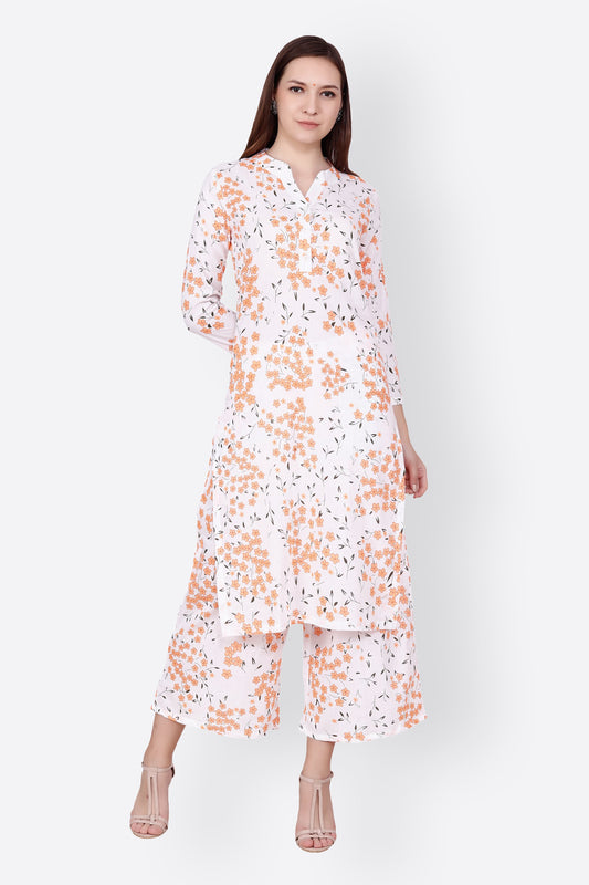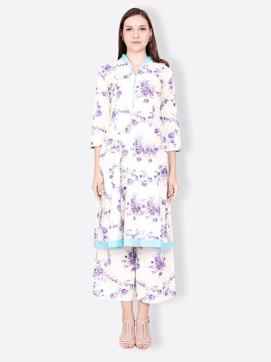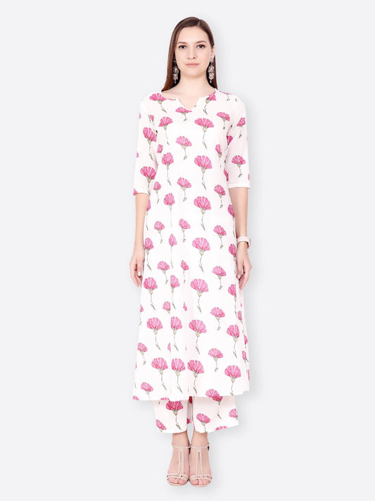 SCORPIUS WHITE PINK FLORAL KURTA