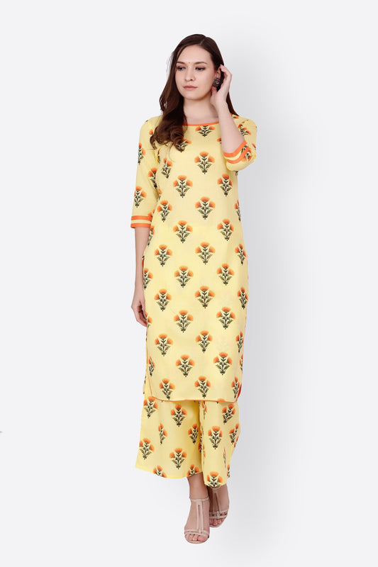 SCORPIUS YELLOW PRINTED KURTA