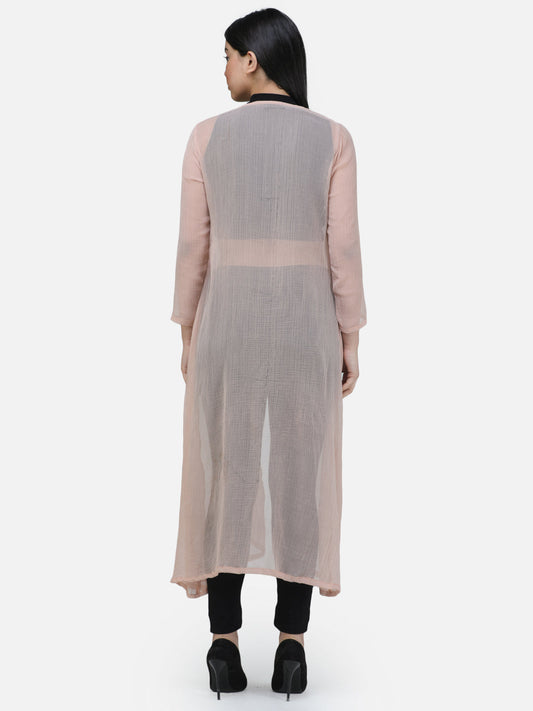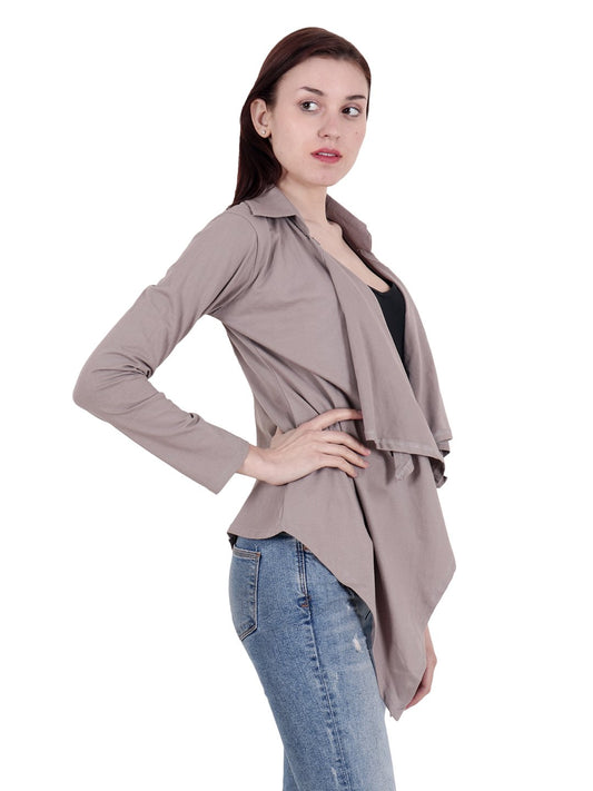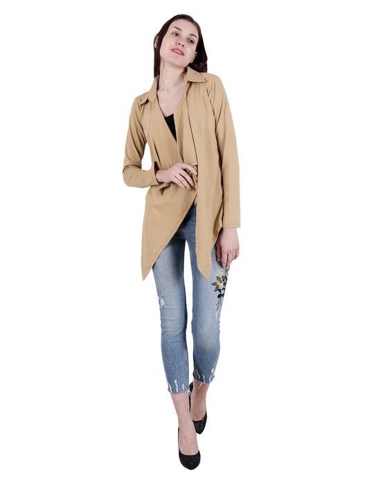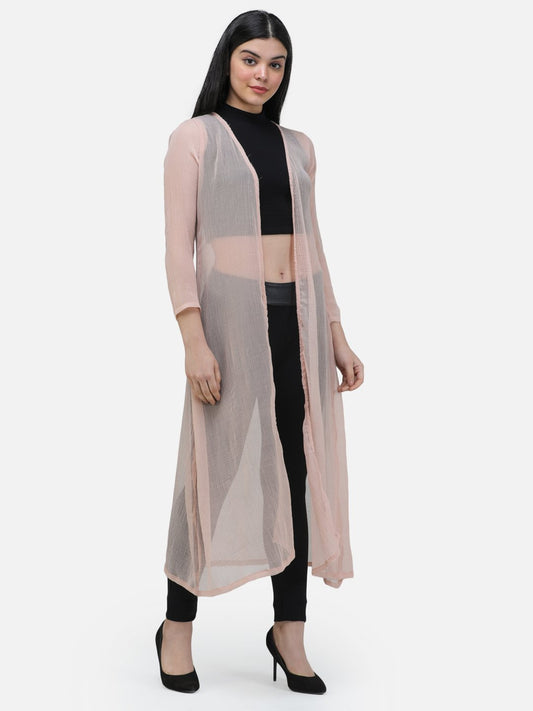SCORPIUS CHIFFON BEIGE SOLID LONG SHRUG