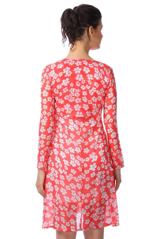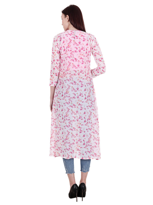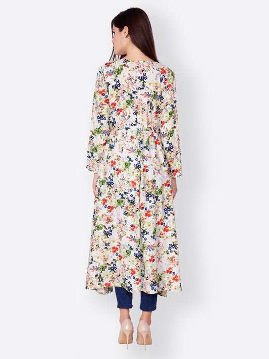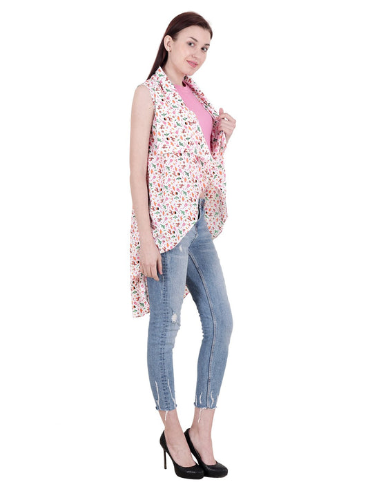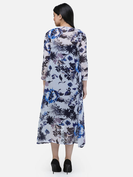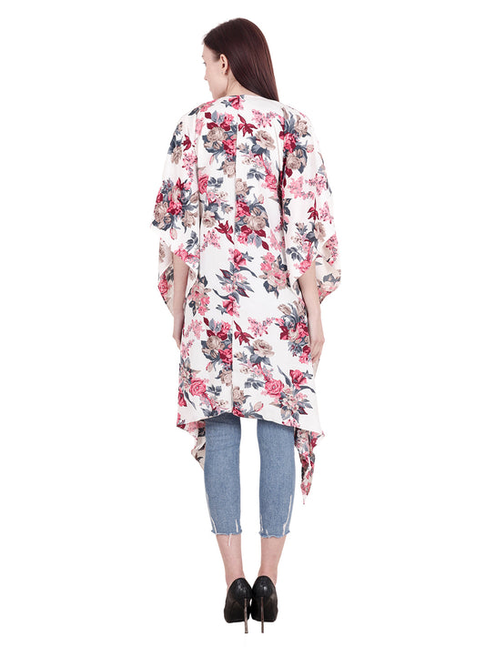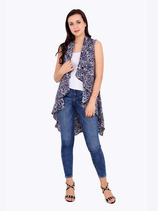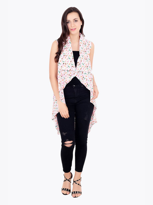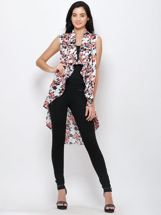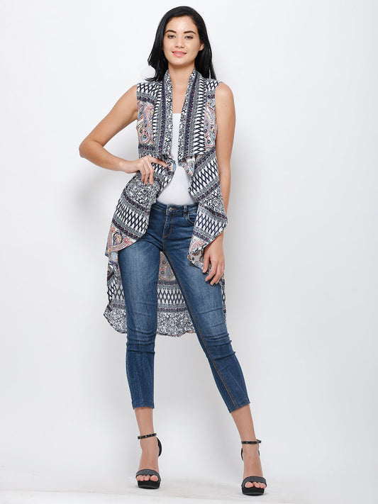 Scorpius Women White & Blue Floral Printed Open-Front Longline Shrug