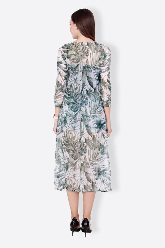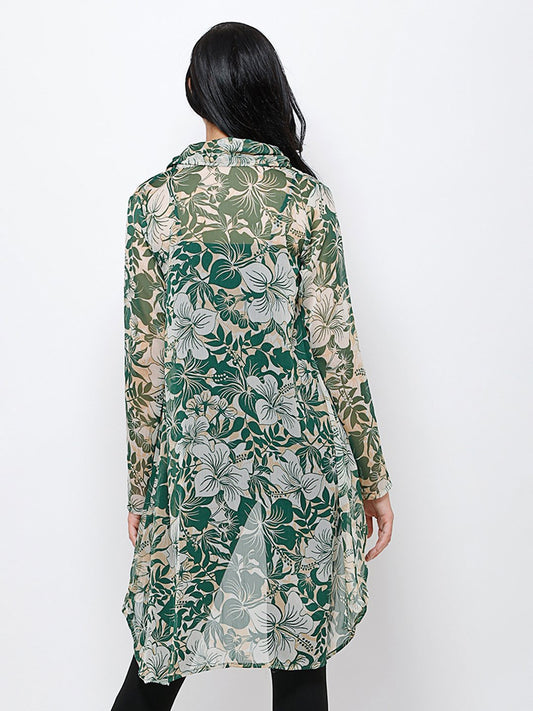 Scorpius Women Off-White & Green Semi-Sheer Longline Shrug