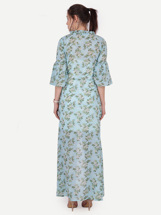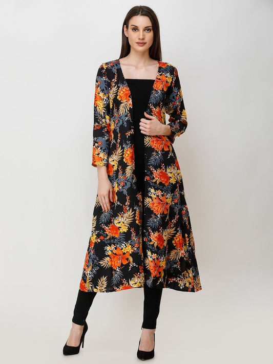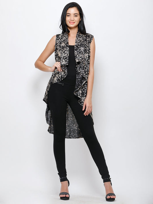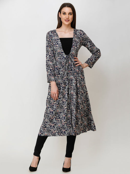 Scorpius Women Blue & Green Printed Longline Open Front Shrug