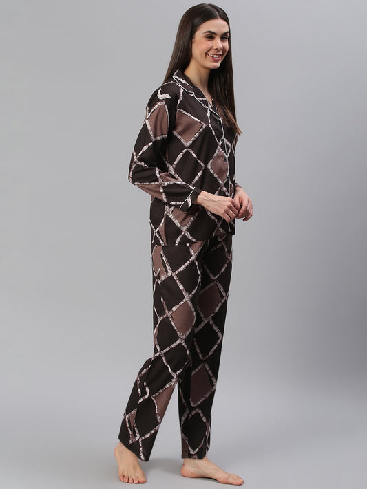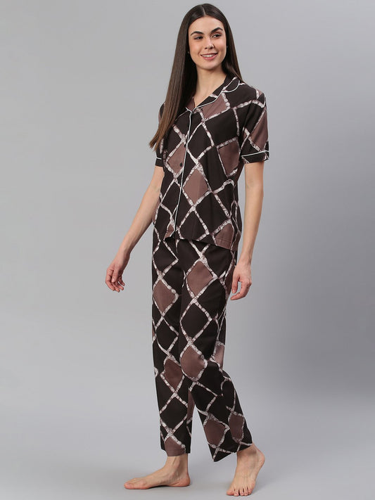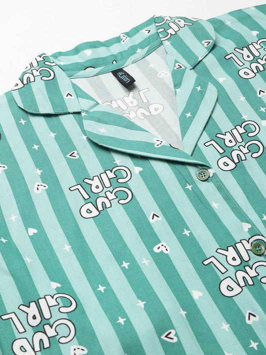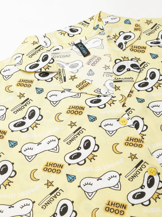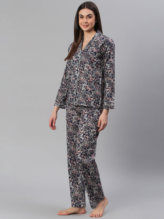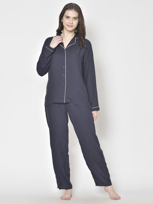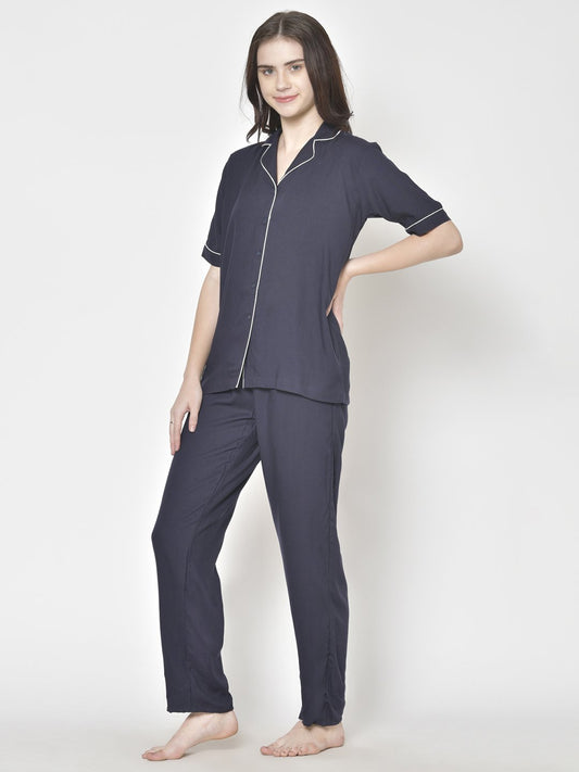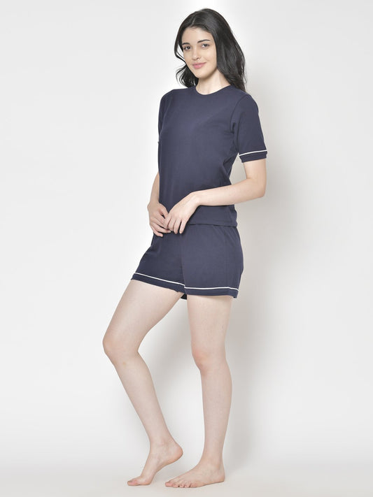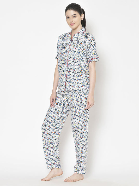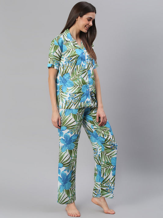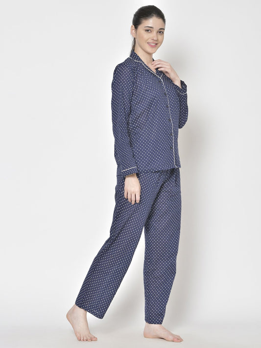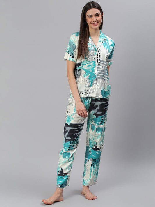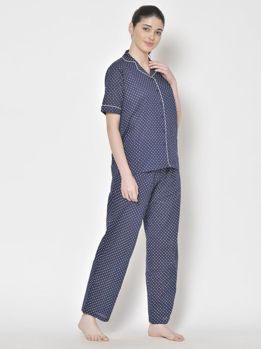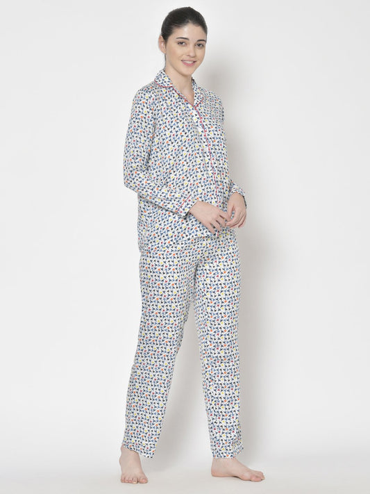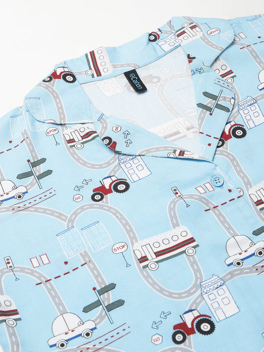 Cation Blue Solid Night Suit & White Printed Night Suit