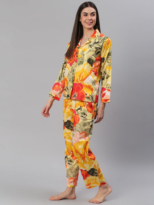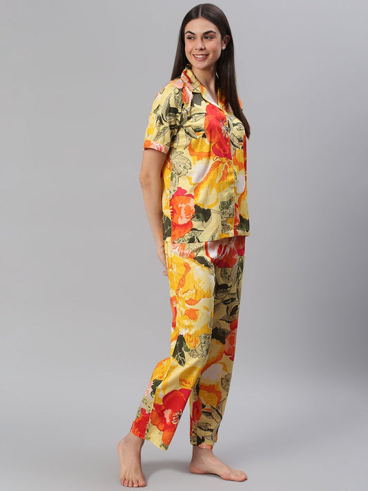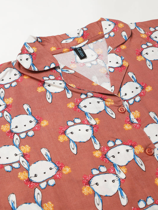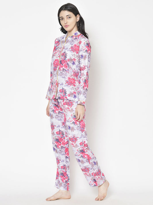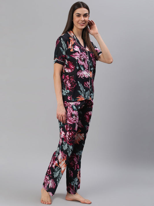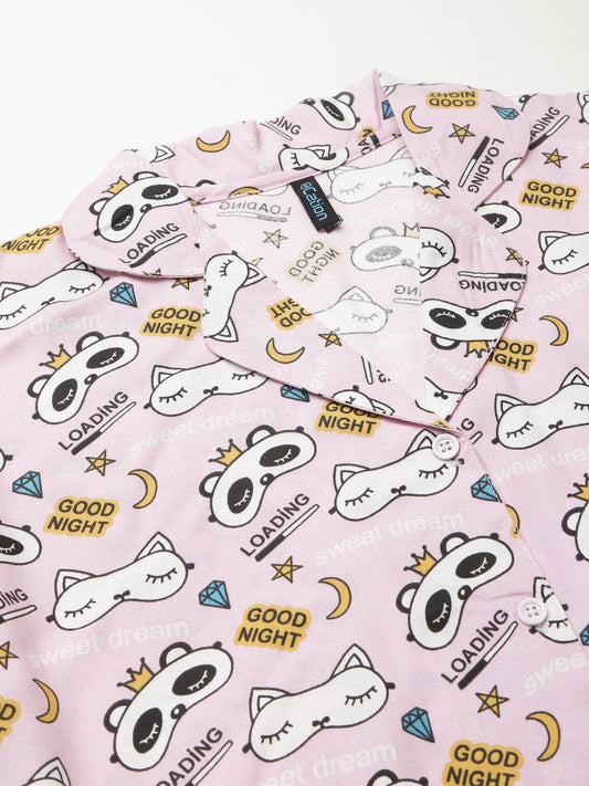 Cation Blue Solid Night Suit & Pink Printed Night Suit