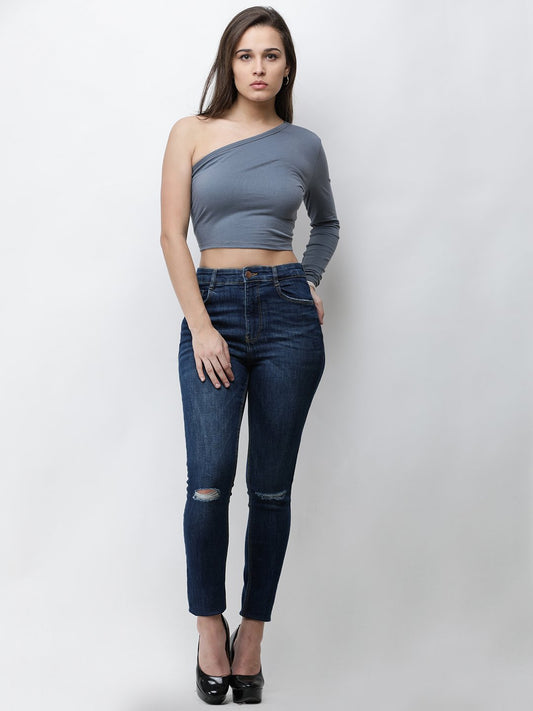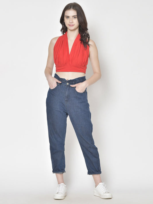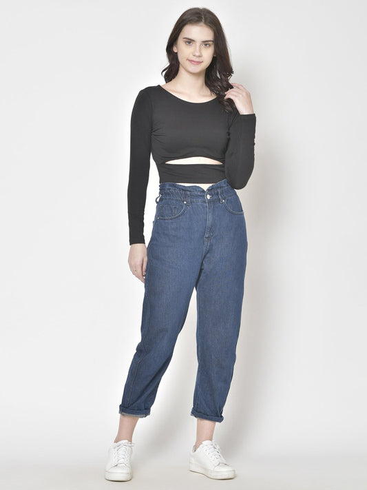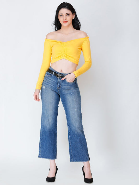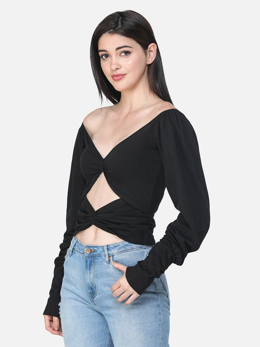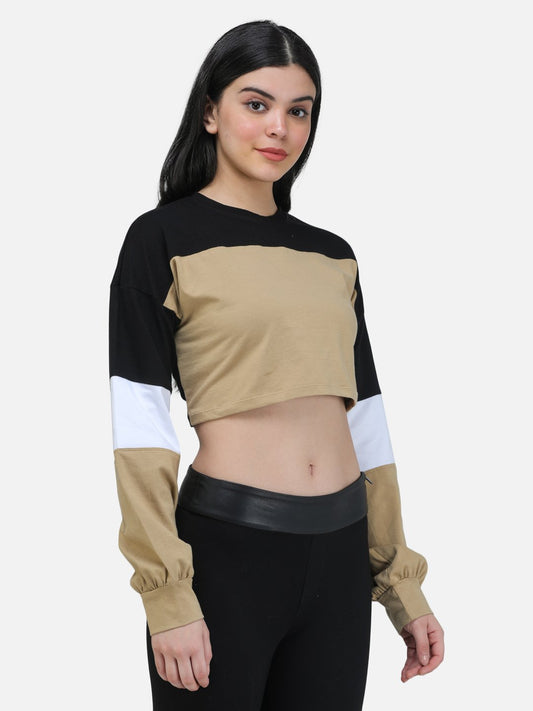 SCORPIUS SOLID SWEATSHIRT STYLE CROP TOP