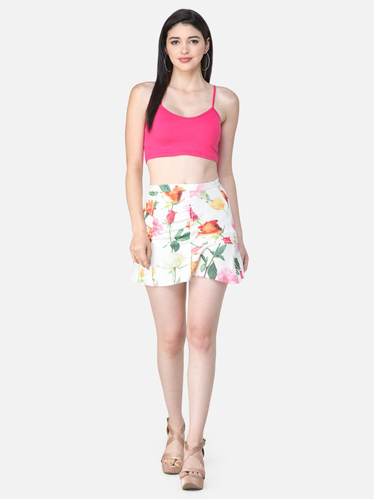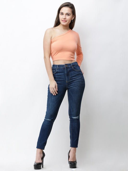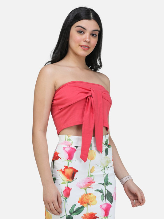 SCORPIUS CORAL OFF SHOULDER FRONT BELT CROP TOP