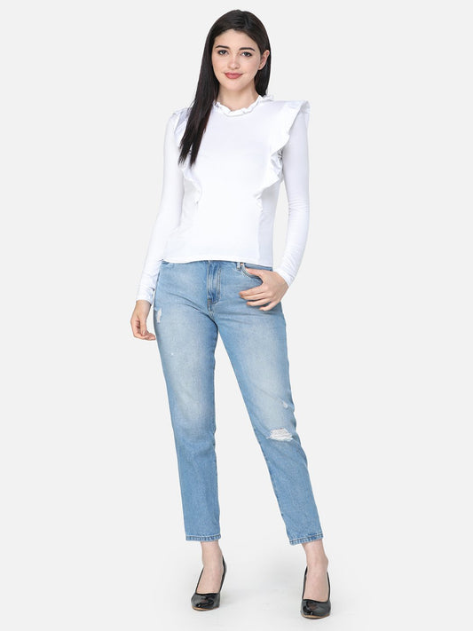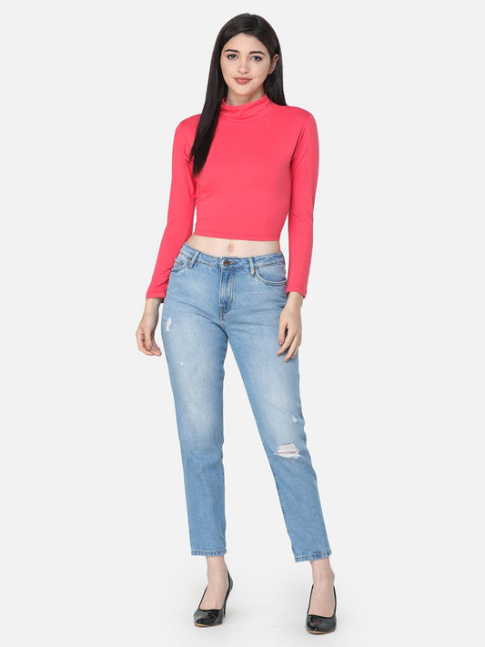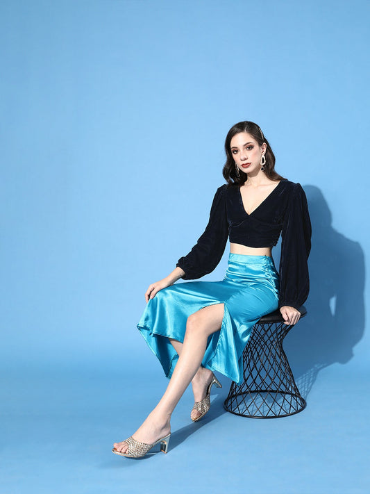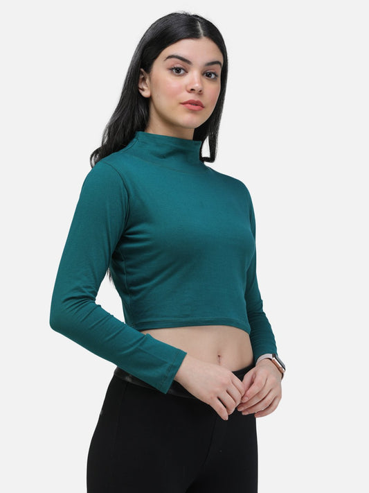SCORPIUS TEAL FULL SLEEVE HIGH NECK CROP TOP