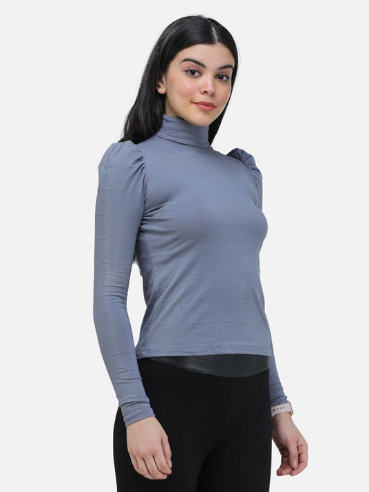 SCORPIUS GREY PUFF SLEEVE HIGH NECK TOP