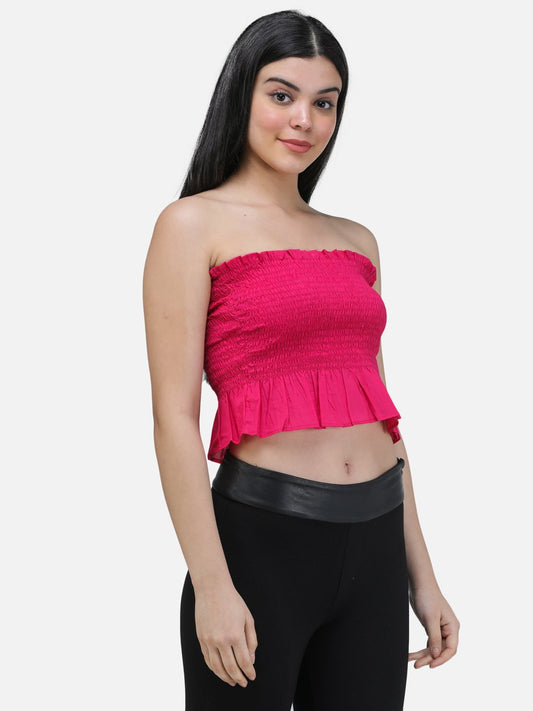 SCORPIUS MAGENTA SOLID OFFSHOULDER TOP WITH SMOKING