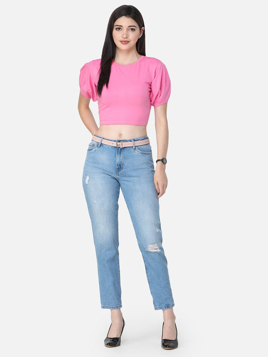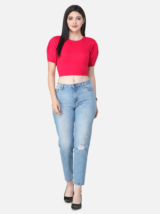 SCORPIUS MAGENTA CUT SLEEVE CROP TOP