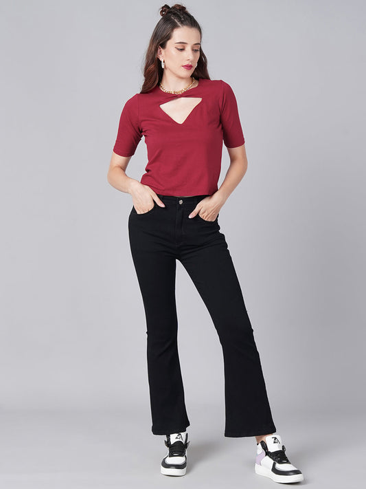 SCORPIUS RED CUT SLEEVE CROP TOP