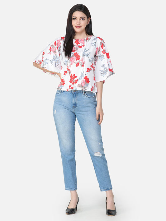 SCORPIUS FLORAL WHITE PRINTED TOP
