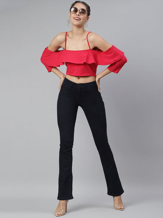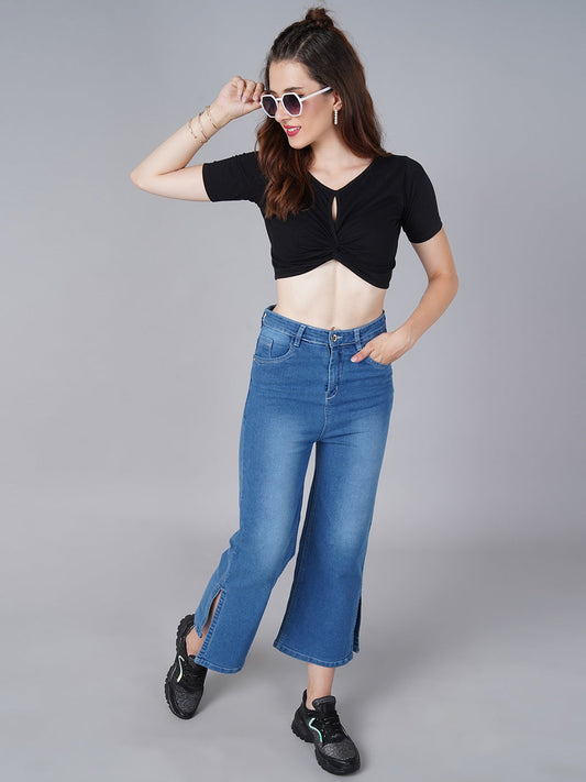 SCORPIUS PURPLE FRONT LASTIC FULL SLEEVE CROP TOP