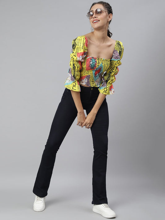 SCORPIUS YELLOW FRONT CROSS STRAP TOP