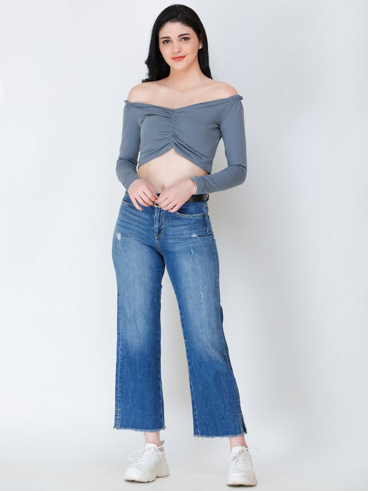 SCORPIUS grey off shoulder crop top