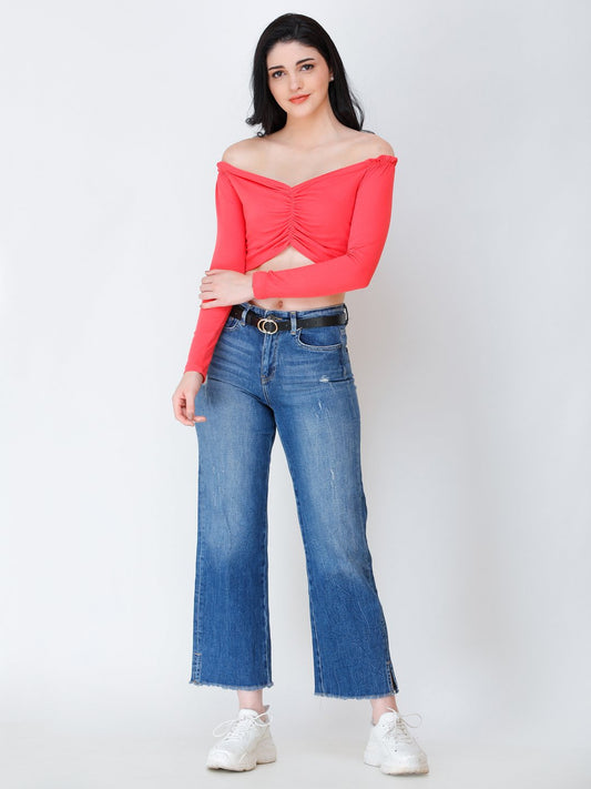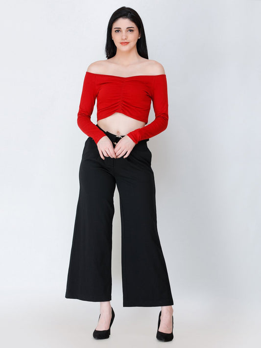 SCORPIUS Maroon off shoulder crop top