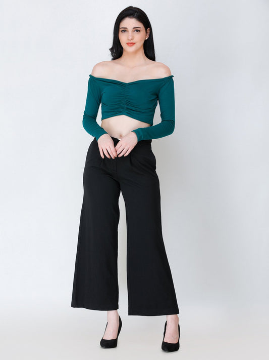 SCORPIUS Teal off shoulder crop top