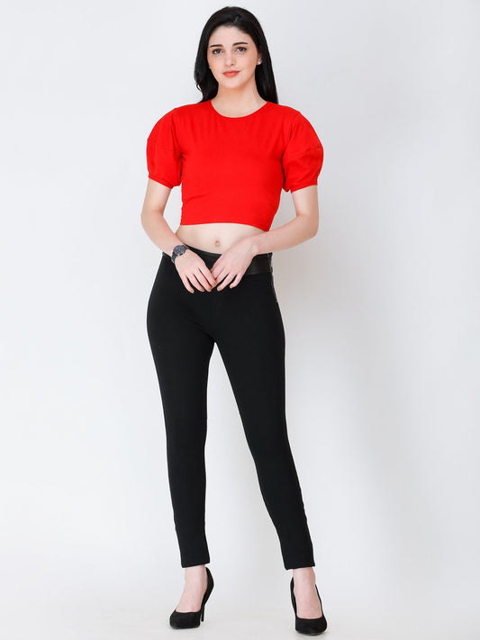 SCORPIUS Red puff sleeve crop top