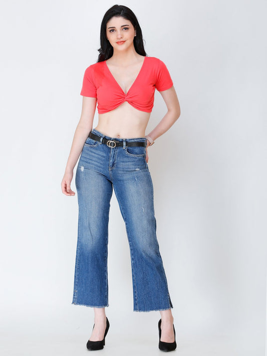SCORPIUS coral styled front crop top