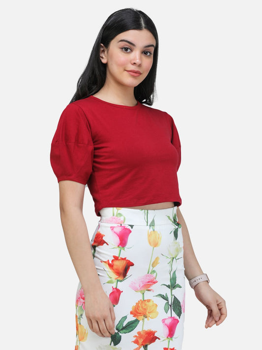 SCORPIUS MAROON PUFFED SLEEVE CROP TOP