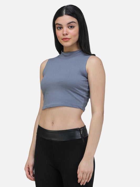 SCORPIUS GREY CUT SLEEVE CROP TOP