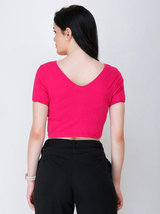 SCORPIUS Women Pink Solid Cinched Waist Top