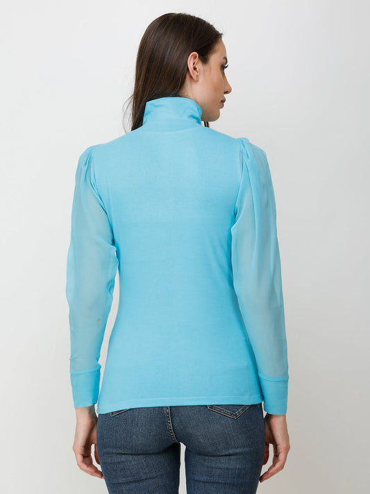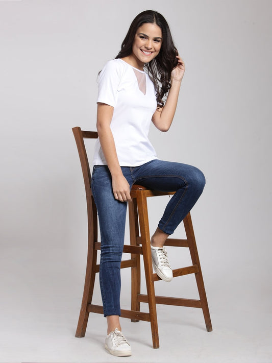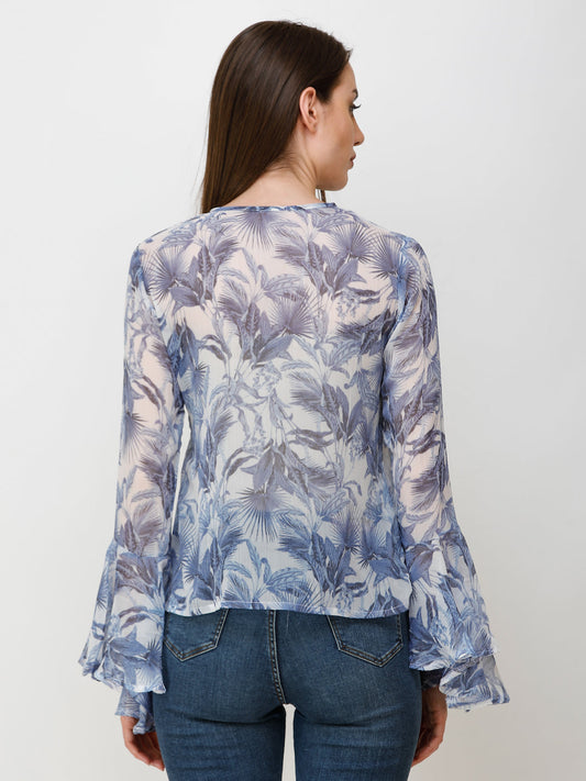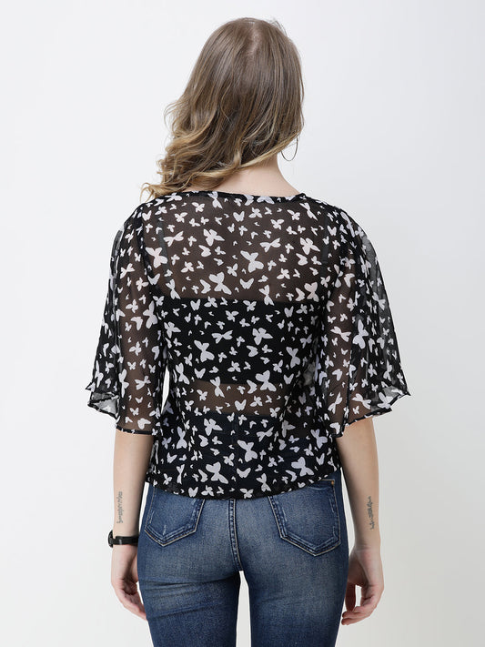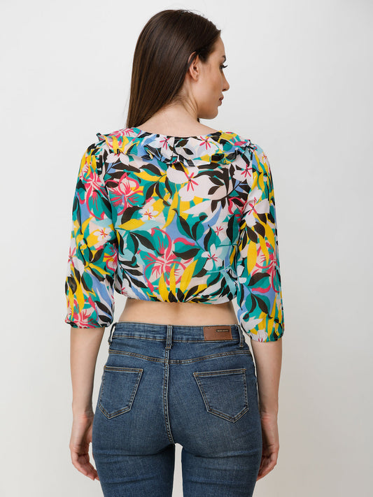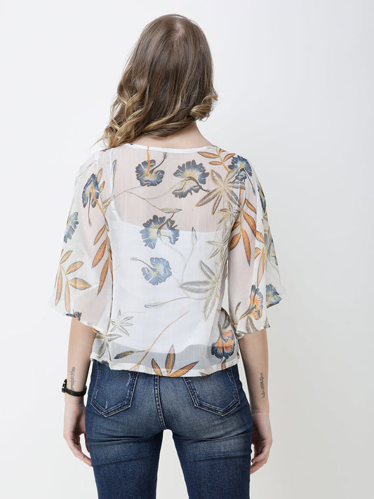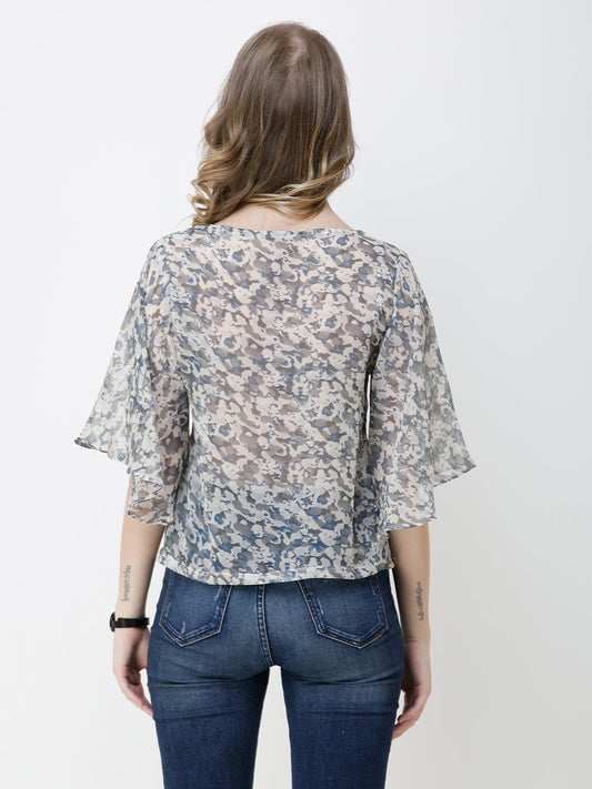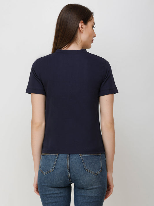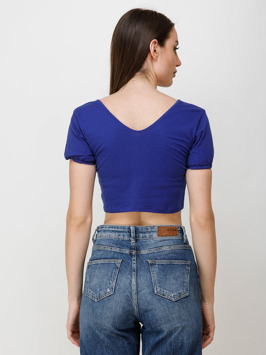 SCORPIUS Women Blue & White Printed Fitted Crop Top