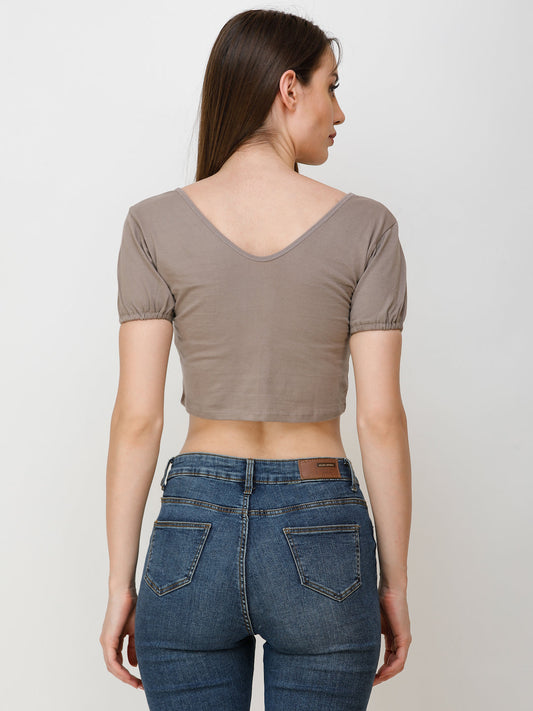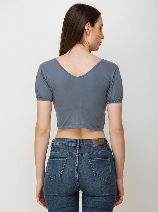 SCORPIUS Women Grey Solid Fitted Crop Top