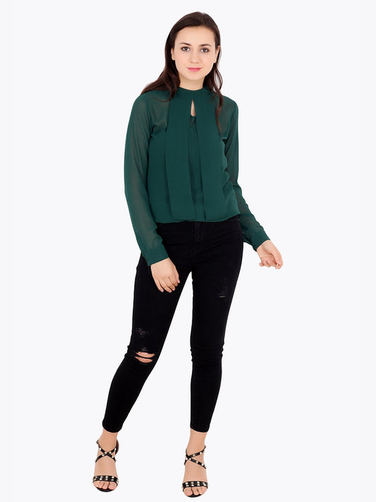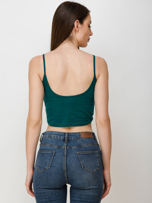 SCORPIUS Women Teal Green Solid Crop Bralette Top