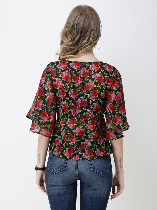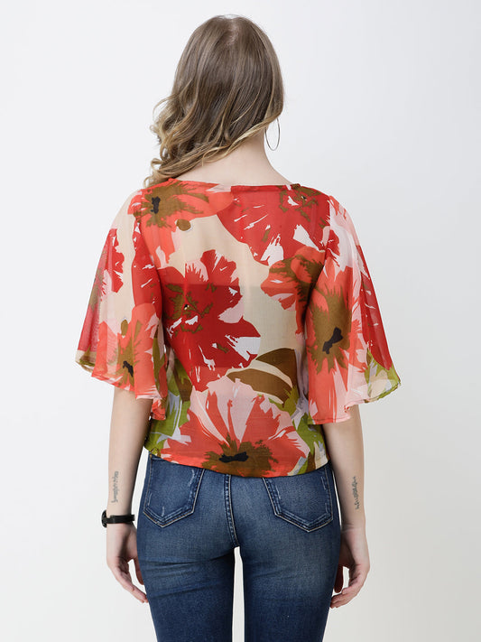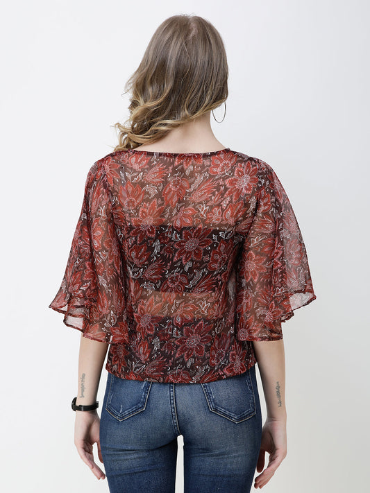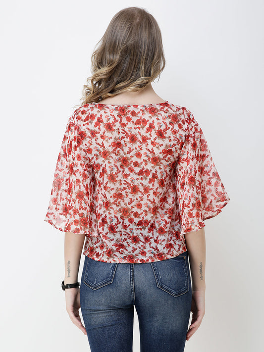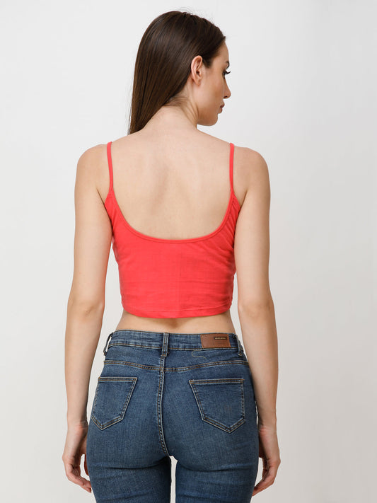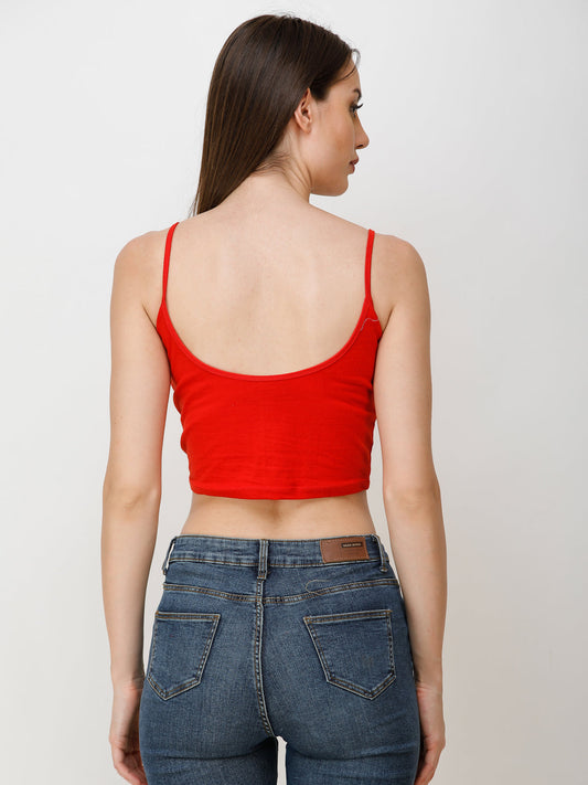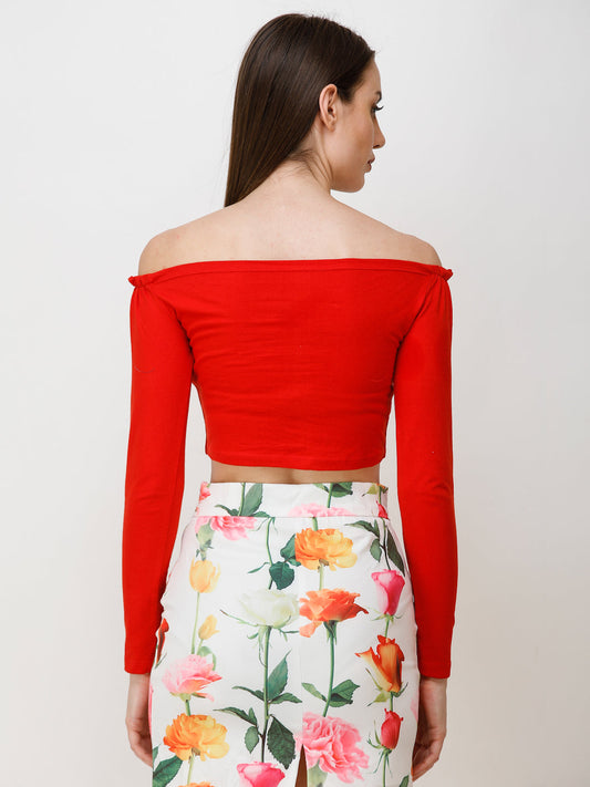 SCORPIUS Women Red Solid Front Styled Bardot Crop Top