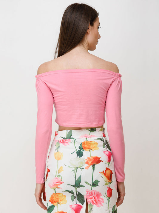 SCORPIUS Women Pink Solid Bardot Crop Top