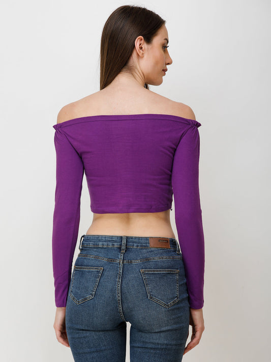 SCORPIUS Women Purple Solid Bardot Crop Top
